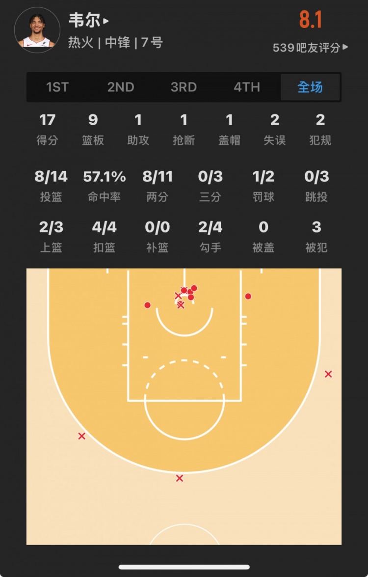 熱火15號秀 克雷爾-韋爾 登場32.1分鐘