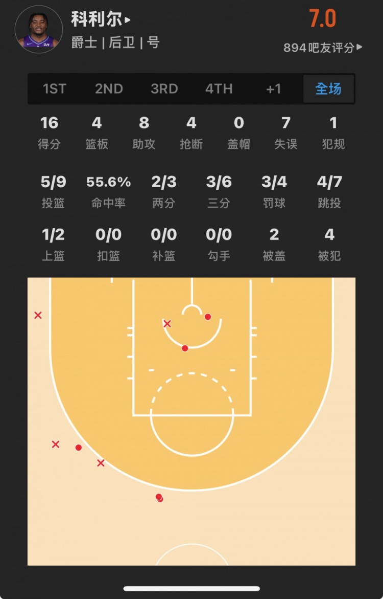 爵士29號秀 以賽亞-科利爾 登場31.5分鐘