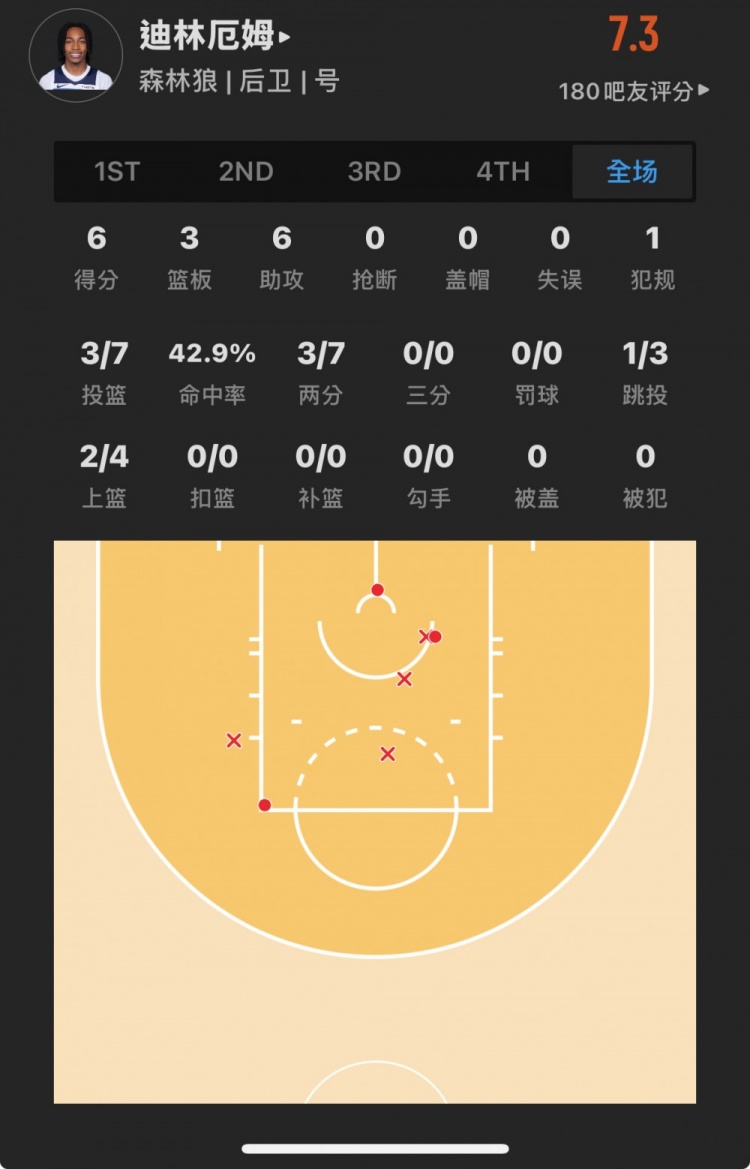 森林狼8號秀 羅布-迪林厄姆 登場21.3分鐘