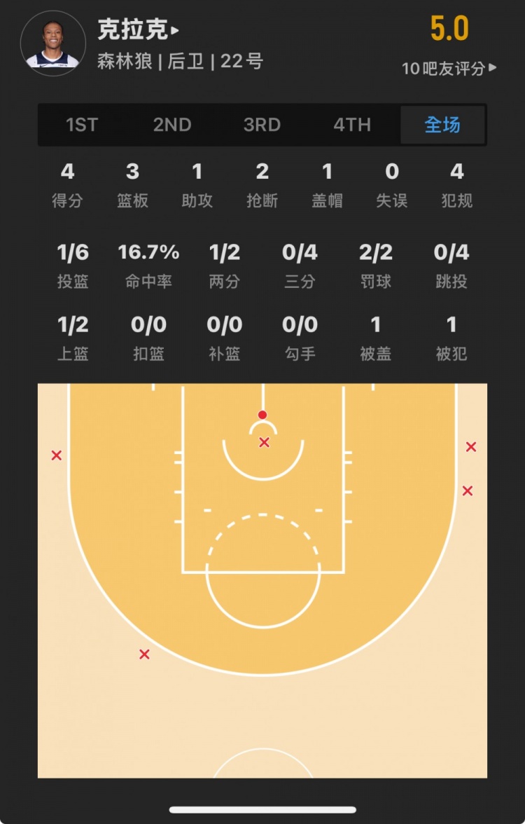 森林狼23年53號秀 杰倫-克拉克 登場24.1分鐘
