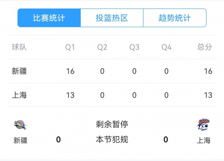 2月15日訊 CBA俱樂部杯決賽,新疆對陣上海。第一節,雙方力拼防守,得分都很困難,新疆全隊23投6中,三分11中2,罰球2中2單節拿到16分;上海全隊8投僅1中,三分3中0、罰球12中11得到13分。 本文標簽: CBA 中國籃球 籃球 新疆 上海