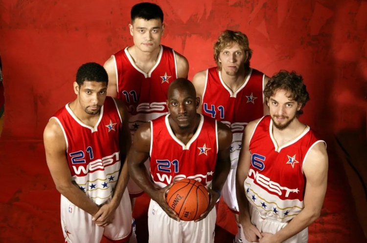 當(dāng)然,只看全明星,那些年的正賽陣容中也始終保持了一定數(shù)量的國(guó)際球員,姚明、諾維茨基、納什、帕克、加索爾,然后吉諾比利、奧庫(kù)等偶爾拿張?bào)w驗(yàn)卡。但可以明顯看出西部隊(duì)基本總是包圓兒,東西部嚴(yán)重不平衡。