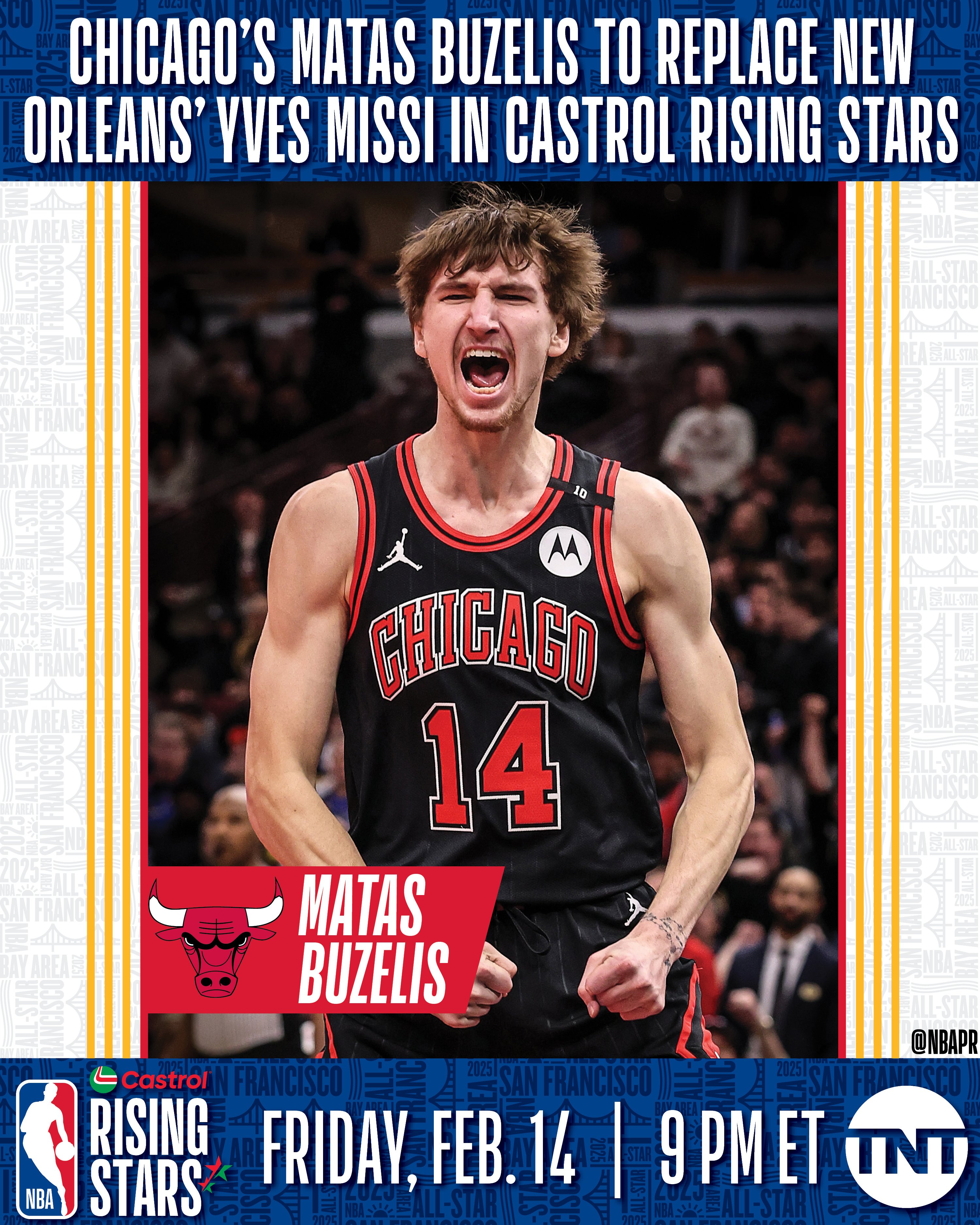 - 官方:公牛前鋒布澤利斯將代替受傷鵜鶘中鋒米西 出戰新秀挑戰賽