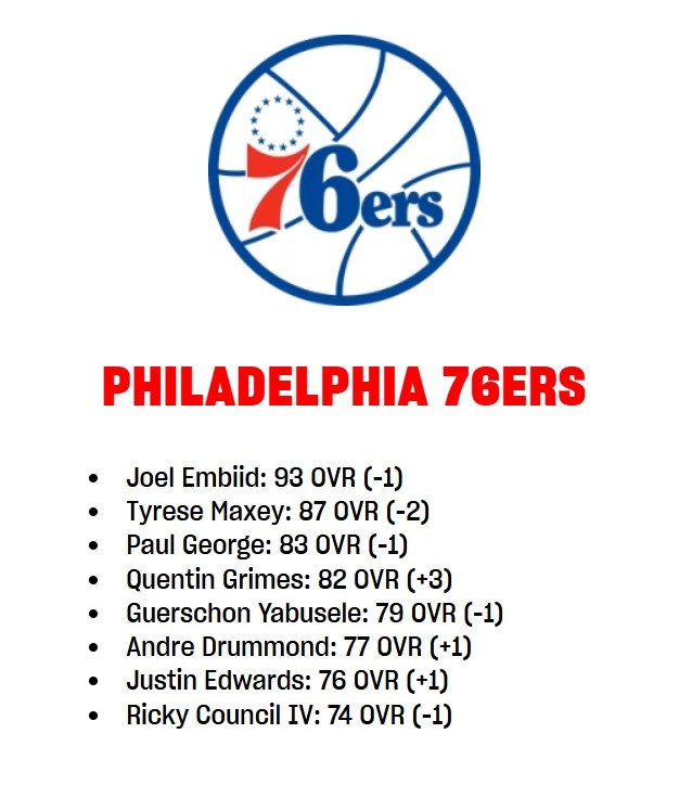 3月7日訊 NBA2K官方更新了各隊球員的能力值,76人球員變化情況如下:恩比德:93(-1)馬克西:87(-2)喬治:83(-1)格萊姆斯:82(+3)亞布塞萊:79(-1)莊神:77(+1)愛德華茲:76(+1)康西爾:74(-1) 本文標(biāo)簽: 籃球 NBA 76人 喬治 恩比德
