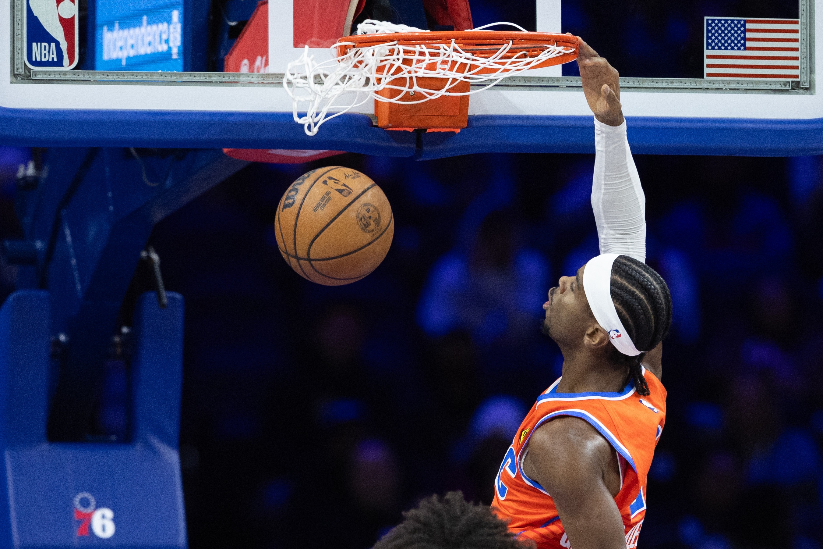 賽季至今,亞歷山大出戰61場,場均34.2分鐘,得到32.8分5.1籃板6.2助攻1.8搶斷1蓋帽,投籃命中率52.6%,三分命中率37.8%。雷霆目前以51勝11負排名西部第一。