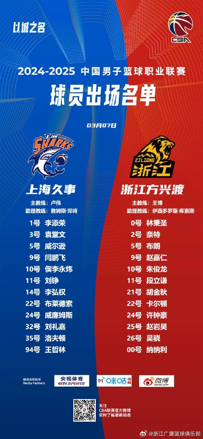 3月7日訊 今晚7點35分,上海男籃將在主場迎戰(zhàn)廣廈男籃。本場比賽的大名單已經出爐,王哲林、胡金秋、朱俊龍領銜。以下為具體的名單:上海隊:李添榮、袁堂文、威爾遜、閆鵬飛、偰李永煒、劉錚、李弘權、布萊德索、威廉姆斯、劉禮嘉、洛夫頓、王哲林。廣廈隊:林秉圣、奈特、布朗、趙嘉仁、朱俊龍、段立謙、胡金秋、卡爾頓、許鐘豪、趙巖昊、吳驍、納納利。 本文標簽: 籃球 CBA 中國籃球 廣廈 上海
