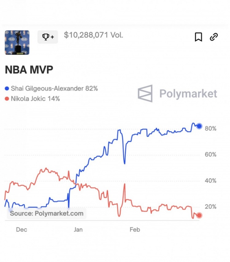 3月8日訊 NBA常規(guī)賽,掘金147-141加時擊敗太陽。本場比賽,約基奇出戰(zhàn)44分55秒,22投13中,其中三分7中3,另外罰球3中2,狂轟31分21籃板22助攻3搶斷!賽后美媒Polymarket更新了MVP概率,約基奇僅有14%,而亞歷山大則高達(dá)82%。 本文標(biāo)簽: 籃球 NBA 掘金 約基奇 雷霆 亞歷山大