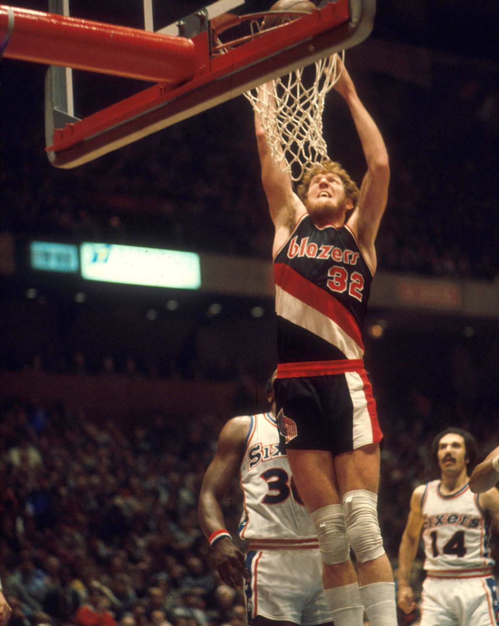 至少在比爾-沃頓的雙腳傷病徹底毀了他的職業生涯之前,開拓者在1977年憑借他的出色表現奪得了總冠軍。從某種意義上說,有人可能會認為,沃頓帶領開拓者戰勝“J博士”歐文率領的76人這一事實,讓他比恩比德更“出色”。但這并不能改變另一個事實,那就是沃頓因為傷病缺席了整整四個賽季,在他出戰的10個賽季中,有9個賽季出戰場次不超過67場。