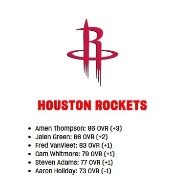 1月31日訊 NBA2K本周更新,火箭隊內球員的能力值有所變化,阿門-湯普森由83升至86。杰倫-格林由84升至86,范弗里特82升至83,惠特摩爾和亞當斯各升1,分別是79和77。阿隆-霍勒迪則從74調低至73。 本文標簽: NBA 籃球 火箭 杰倫-格林 范弗里特
