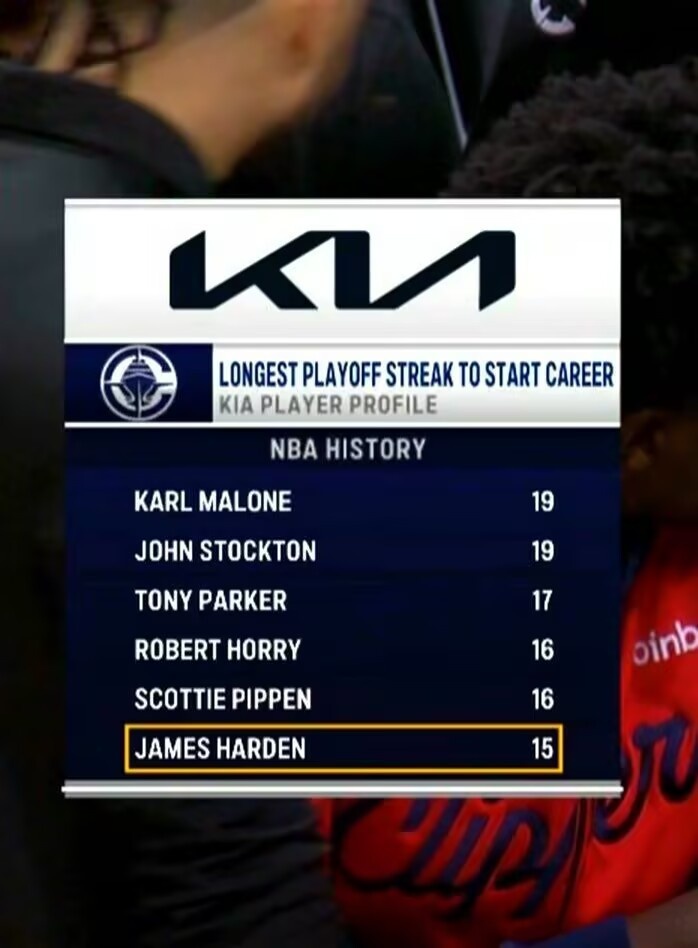 今年穩了嗎?哈登生涯前15個賽季均打進季后賽 歷史第4長紀錄