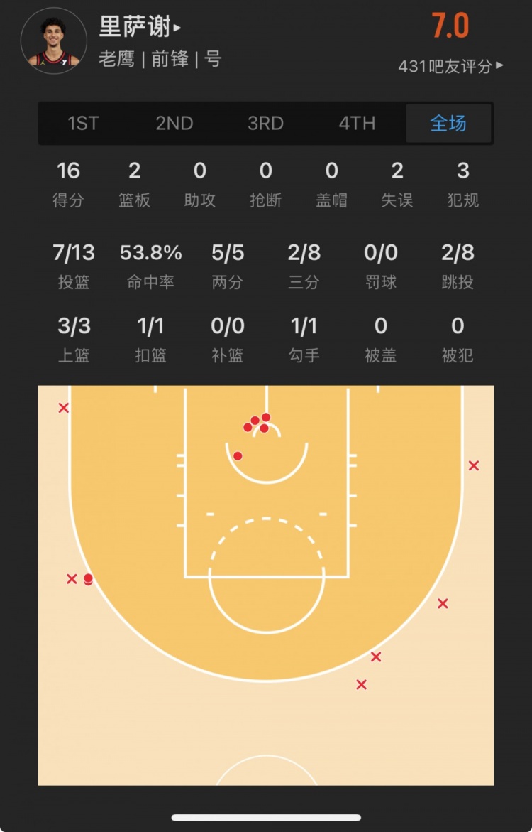 76人落選秀 亞歷克斯-里斯 登場17.4分鐘