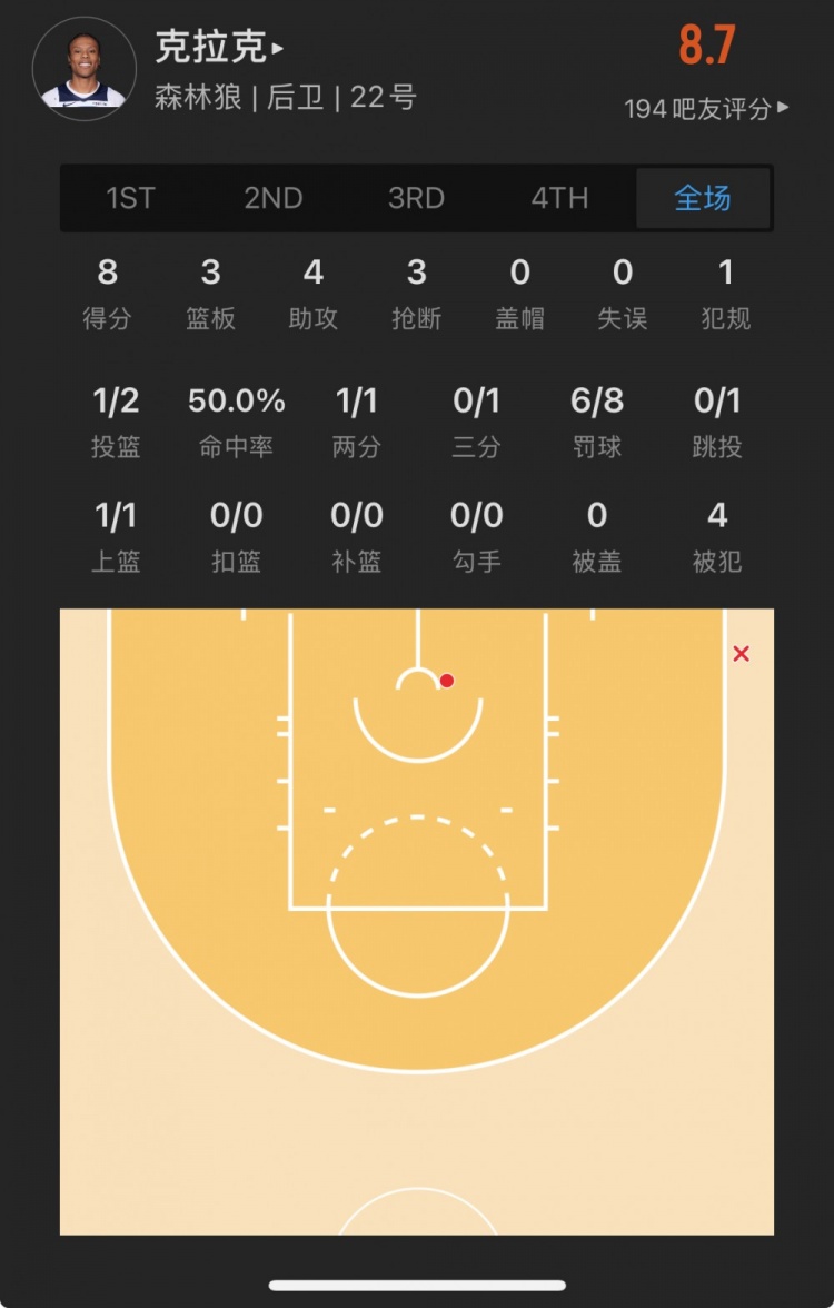 森林狼23年53號秀 杰倫-克拉克 登場16.9分鐘
