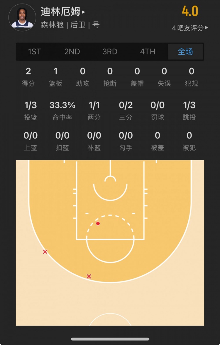 森林狼8號秀 羅布-迪林厄姆 登場9.4分鐘