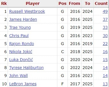 3月18日訊 掘金客場挑戰(zhàn)勇士,上半場62-50領(lǐng)先11分。威少本場首發(fā)出戰(zhàn),雖然手感不佳5中1僅得2分,但串聯(lián)全隊送出11次助攻,另有6籃板3搶斷1蓋帽,表現(xiàn)相當全面,正負值+7。據(jù)統(tǒng)計,這是威少過去10個賽季以來,第50次半場助攻上雙,為同期最多,哈登以37次排第二。 本文標簽: 籃球 NBA 掘金 威少 哈登