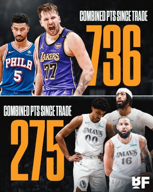 (圖片發(fā)布時(shí)未計(jì)算東契奇本場(chǎng)的21分)交易后東契奇在湖人拿到393分,格萊姆斯在76人拿到364分獨(dú)行俠得到的三位球員克里斯蒂、馬丁和濃眉一共得到275分 本文標(biāo)簽: 籃球 NBA 湖人 獨(dú)行俠 76人 小牛