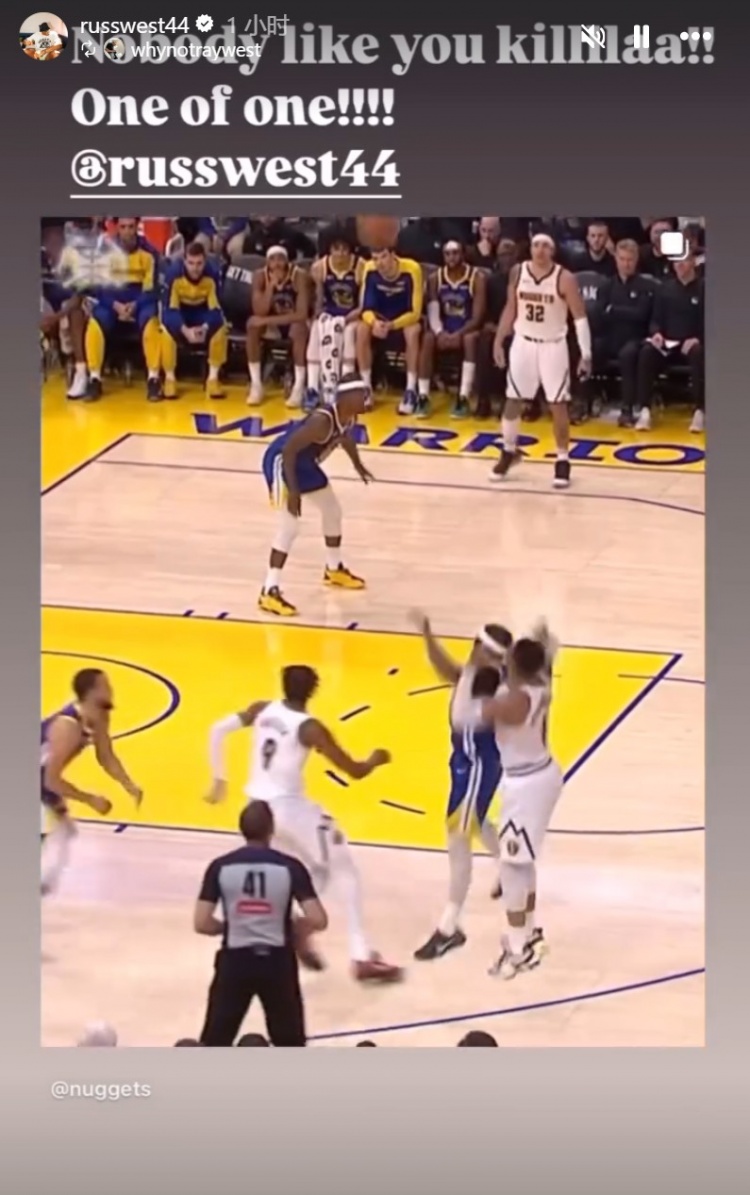 3月18日訊 NBA常規賽,掘金114-105擊敗勇士。此役,威少出戰42分鐘,17中5,三分9中2砍下12分11籃板(3前場籃板)16助攻的三雙,外加3搶斷2蓋帽,這是他生涯第203次三雙,繼續刷新NBA紀錄。賽后,威少轉發自己的關鍵三分,該動態稱贊威少道:“沒有人像你一樣,殺手,獨一無二的威少。” 本文標簽: 籃球 NBA 掘金 威少