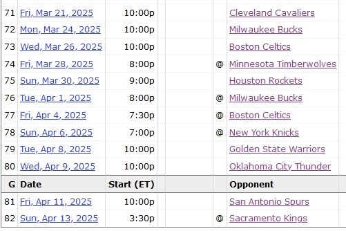 太陽后續賽程如下:
