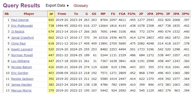 3月22日訊 NBA常規(guī)賽今天繼續(xù)進行,快船在主場迎戰(zhàn)灰熊。三節(jié)結束時,鮑威爾出戰(zhàn)24分鐘13秒,8投4中,三分2投1中,罰球6罰5中,得到14分3籃板2助攻2搶斷。根據(jù)數(shù)據(jù)統(tǒng)計,加上已經(jīng)投進的1個三分,鮑威爾快船生涯三分數(shù)來到448記,他超越路威,獨居隊史三分榜第7位。目前排在鮑威爾前面一位的是萊昂納德,520記三分。 本文標簽: 籃球 NBA 快船