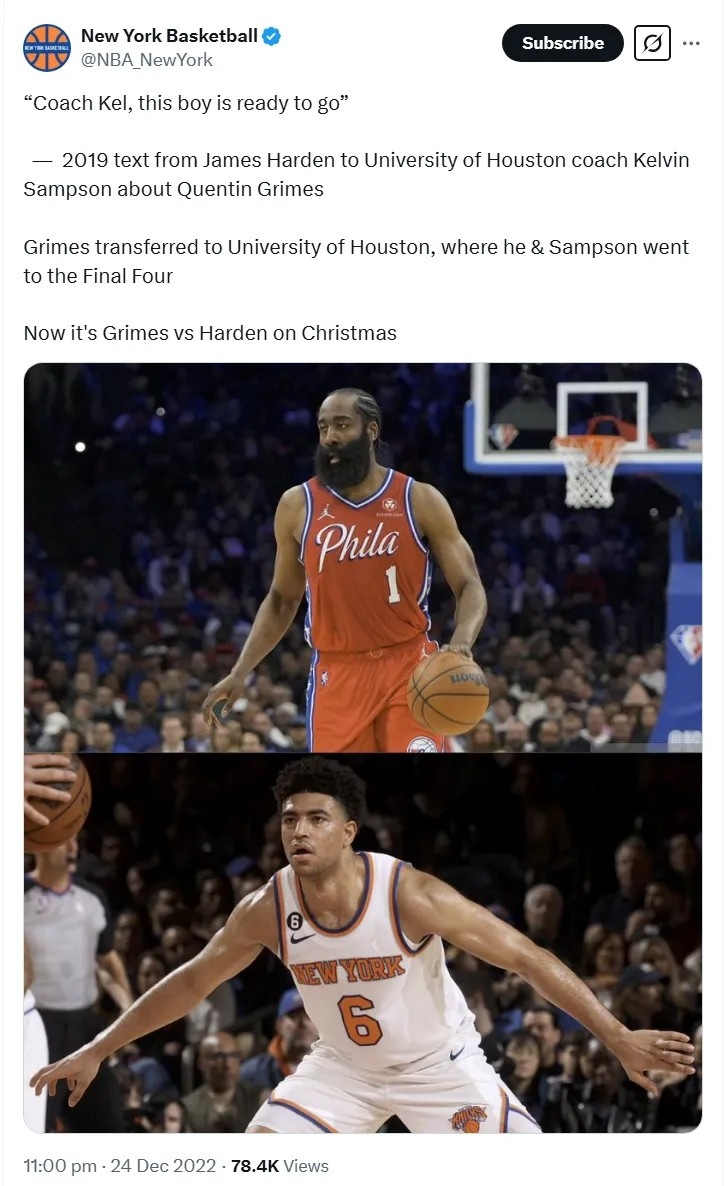 在休斯敦期間,格萊姆斯的擋拆防守和后場籃板能力大大提高了,這兩項后來成為了他在NBA的立足之本。2021年選秀大會,他在首輪第25順位被尼克斯摘走——對于曾經被看好拿下前五順位的天才來說,這個結果多少有些讓人失望,但格萊姆斯心態很好,這得益于他在學生時代一直養成的性格,格萊姆斯堅信,就算兩年前他以高順位進入NBA,該學的東西還是要從頭學起,從一個較低的起點出發不一定是壞事。