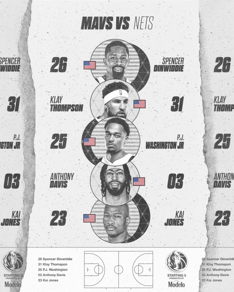 3月25日訊 今天早上7點(diǎn)半,獨(dú)行俠客場(chǎng)挑戰(zhàn)籃網(wǎng)。賽前獨(dú)行俠官方公布了本場(chǎng)比賽首發(fā):濃眉、克萊、丁威迪、凱-瓊斯、PJ-華盛頓。 本文標(biāo)簽: 籃球 NBA 獨(dú)行俠 籃網(wǎng) 克萊 戴維斯