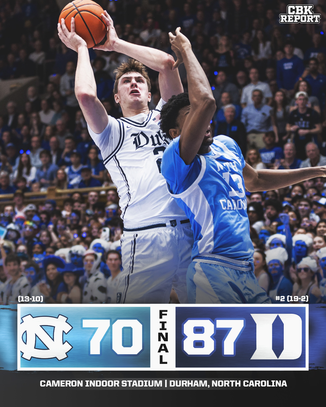 02月02日訊 NCAA常規賽,杜克87-70擊敗北卡,豪取15連勝。