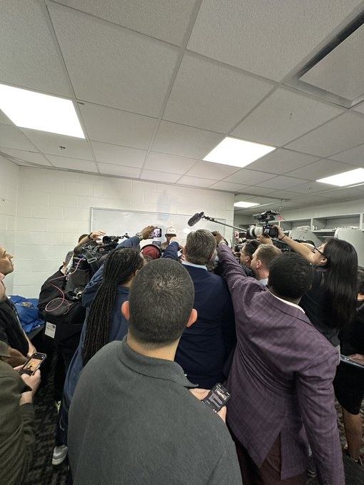 比賽結束后,巴特勒的采訪現場被媒體圍得水泄不通。