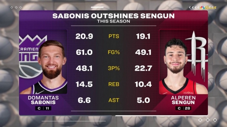 2月2日訊 今年全明星票選出爐,火箭球員申京入圍西部替補,國王球員小薩博尼斯落選。轉播方NBC曬出兩人本賽季的場均數據,其中:小薩場均20.9分14.5籃板6.6助攻,投籃命中率61.0%,三分命中率48.1%;申京場均19.1分10.4籃板5.0助攻,投籃命中率49.1%,三分命中率22.7%。 本文標簽: NBA 籃球 火箭 國王