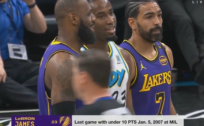 03月27日訊 NBA常規賽,湖人vs步行者三節結束,湖人95-92領先。截至三節比賽,詹姆斯6投0中僅依靠罰球得到3分!他已經連續1282場比賽連續得分上雙。他上次得分沒上雙的比賽還是在2007年1月5日。 本文標簽: 籃球 NBA 詹姆斯