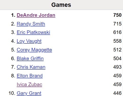 據統計,這是祖巴茨代表快船出戰的第460場比賽,超越埃爾德-布蘭德,上升至隊史第八位。