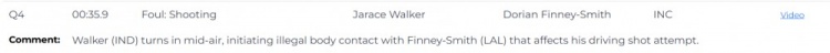 昨日湖人120-119客場險勝步行者,NBA官方出具了本場比賽的裁判報告,本場比賽共出現1次漏判,對湖人不利,詹姆斯壓哨絕殺沒有問題!比賽最后35.9秒,湖人118-119落后一分,步行者球員賈雷斯-沃克防守時半空中轉身,與芬尼-史密斯發生非法身體接觸,影響了后者的上籃出手,此為犯規漏吹,芬尼-史密斯應該獲得兩罰。此外,比賽最后0.1秒,在與錄像回放中心溝通后確認,詹姆斯在比賽時間結束前完成出手,投籃有效! 本文標簽: 籃球 NBA 湖人 詹姆斯 步行者