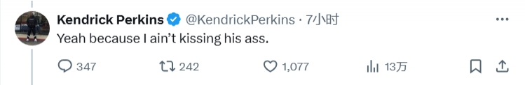 03月28日訊 去年六月,因為帕金斯批評詹姆斯搶熱度,詹姆斯在推特上取關了帕金斯。今天的節目中,帕金斯表示:“他取關了我,然后我拉黑了他的電話號碼。”帕金斯隨后還在自己的推特上補充說:“是的,因為我不想拍他馬屁。”相關內容>>>帕金斯怒批詹姆斯蹭歐文熱度搶風頭????詹姆斯直接拉黑取關了他 本文標簽: 籃球 NBA 湖人 詹姆斯