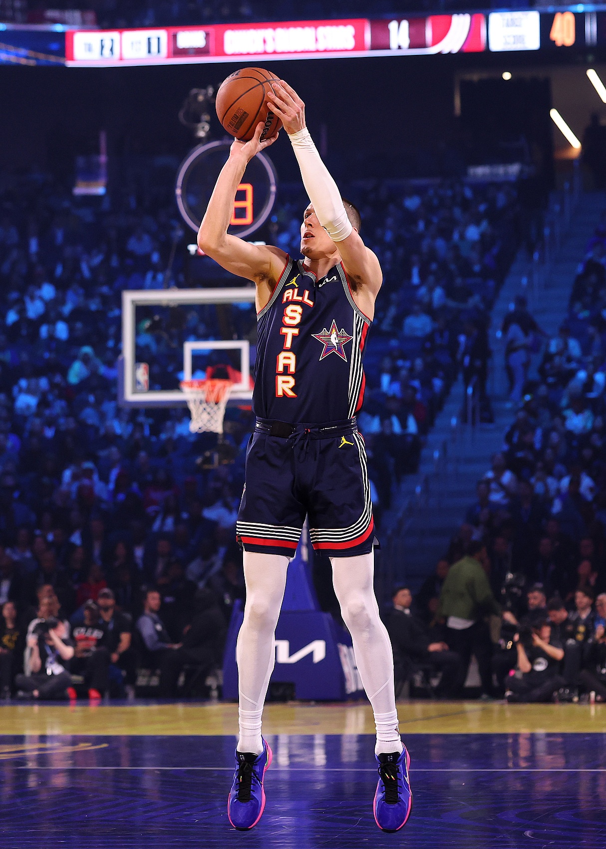克拉姆:我同意邦當?shù)挠^點,今年沒有人可能打破這一趨勢,因為該獎項的熱門候選人——普理查德、馬利克-比斯利和被低估的泰-杰羅姆——都不太可能在任何時候成為全明星。所以我將作弊并選擇拉塞爾-威斯布魯克,作為掘金隊中一位高效的第六人,他有充分的理由獲得投票者的考慮,而且他可能會在他生涯的最后一個賽季中獲得榮譽全明星的席位,就像德克-諾維茨基和德維恩-韋德一樣。