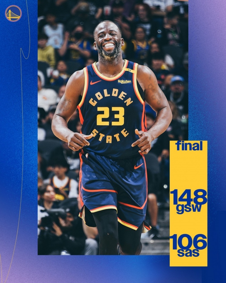 3月31日訊 NBA常規賽,勇士148-106大勝馬刺。賽后勇士官方贏球海報封面人物給到了追夢格林。本場比賽,追夢出戰21分鐘,投籃9中6,三分4中2,拿下14分5籃板2助攻1搶斷,失誤1次,正負值+12。 本文標簽: 籃球 NBA 勇士 追夢