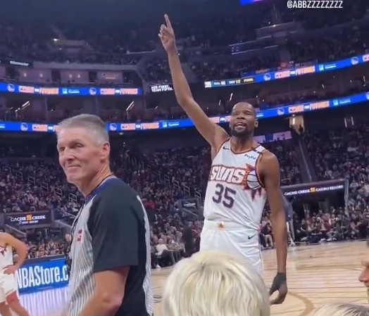 杜蘭特:“如果你在這,那我就在天花板上。”佩頓:“看!兄弟,他要上天了!”杜蘭特:“情況就是這樣,你跟我這么大的時候,你已經是板凳席上的第8個人了。”佩頓:“我(在這個年齡)會和你做一樣的事情。”相關閱讀:逗樂一幫人????杜蘭特跟看臺上的老佩頓對噴垃圾話惹他干嘛!?和老佩頓對噴后 杜蘭特揮舞鐮刀連續命中三記三分 本文標簽: 籃球 NBA 杜蘭特 太陽 勇士