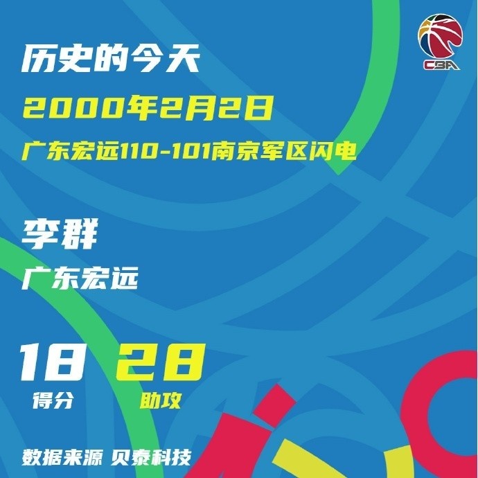 2月2日訊 2000年的今天,李群送出28次助攻,創造了CBA歷史的球員單場助攻紀錄。