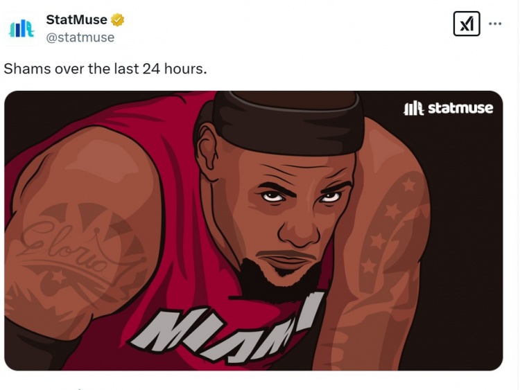 美媒StatMuse曬出了詹姆斯死亡之瞳的漫畫圖,并寫道:“在過去的24小時(shí)內(nèi)Shams就是這樣的。”