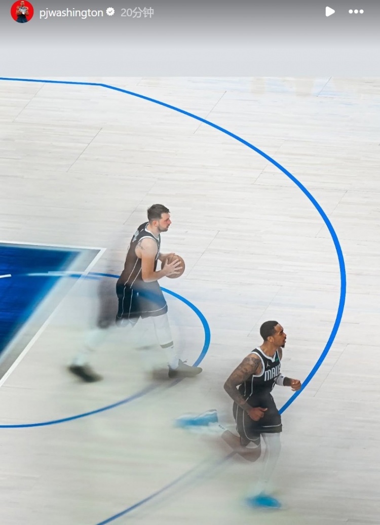 今天,獨行俠前鋒PJ-華盛頓在INS轉發了自己和東契奇的同框照。