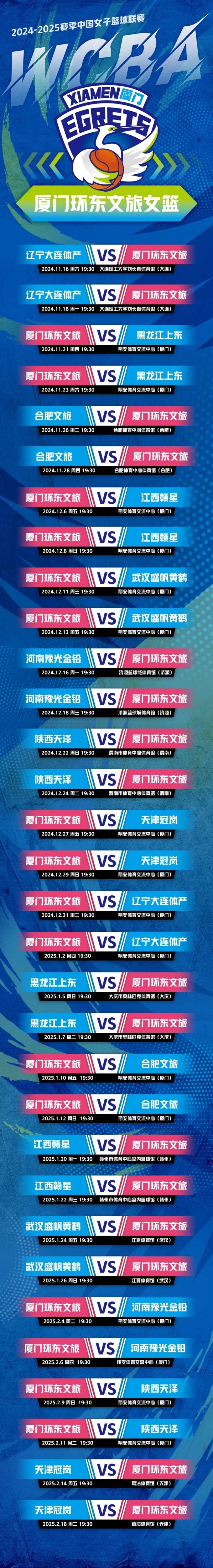 雙方在河南濟源主場交手的兩場比賽,廈門環東文旅分別以21分、29分的劣勢不敵對手,兩場比賽對手沖擊力都很強,在罰球線上拿到不少分數;孫麗成為奇兵,兩場比賽分別高效拿到12分、20分。整體來說,雙方陣容上都有些許變化,本場比賽變數還是頗多。雙方都因春節休息較長時間,打好開局拿到優勢對兩隊都顯得尤為重要。廈門環東文旅需要加強對對手重點球員的防守,希望廈門女籃隊員們能在主場果斷進攻、把握機會,面對強敵無所畏懼,敢拼敢打,爭取復仇。