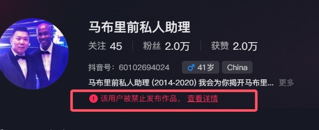 - 自稱馬布里前助理抖音賬號被禁言 昨天發布內容希望老馬好好做人