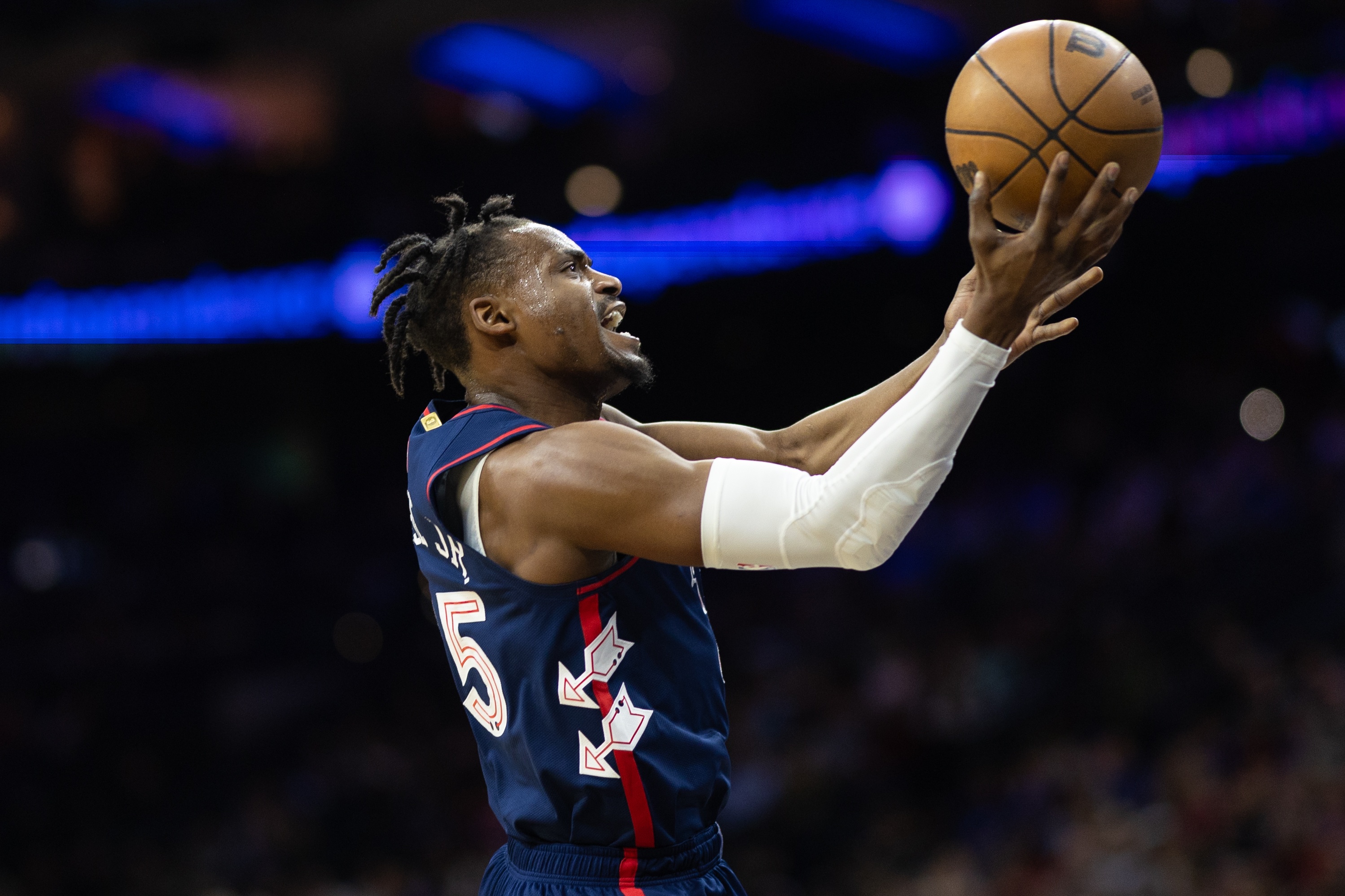 一年后的情況:這是尼克斯圍繞布倫森重組首發陣容的良好開端。他們在休賽期還交易得到了米卡爾-布里奇斯和唐斯,這為我們帶來了NBA最出色的進攻之一。他們的防守也開始嶄露頭角,阿努諾比如預期那樣與尼克斯續約。對猛龍來說,他們在截止日前還完成了一筆重要交易(下文會提到),而巴雷特的表現相當不錯??死举惣疽騻毕撕芏啾荣?,但他在去年夏天簽下了一份五年1.75億美元的續約合同。