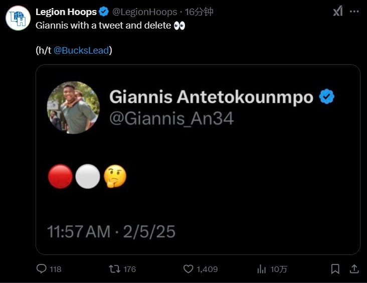 推特內容為:紅白色+思考的表情包。不過,在發了這條推特后,字母又將其刪除了。