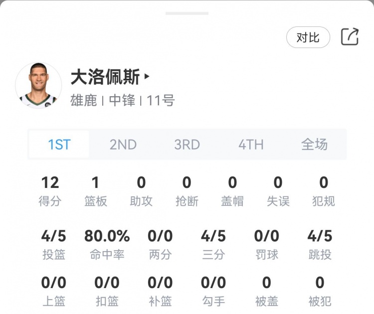 第一節,雄鹿中鋒大洛佩斯手感火熱,半節的時間三分5投4中獨得12分,幫助球隊占據主動。