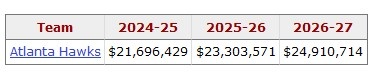 2月7日訊 據名記Stein追蹤報道,消息源透露,騎士和老鷹仍在就德安德烈-亨特就行談判。據了解,雙方試圖制定一個交易結構,以保證兩支球隊的薪資都能保持在奢侈稅以下。亨特本賽季至今為老鷹出戰36場比賽,場均18.9分3.8籃板1.4助攻。他的合同將在2026-27賽季到期,具體薪資情況如下: 本文標簽: NBA 籃球 老鷹 騎士