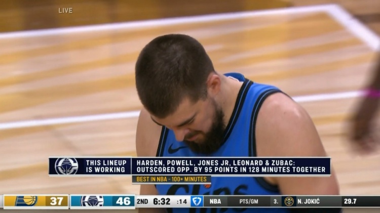 快船卡&登&祖&鮑&瓊五人組出場128分鐘凈勝95分 聯盟最佳