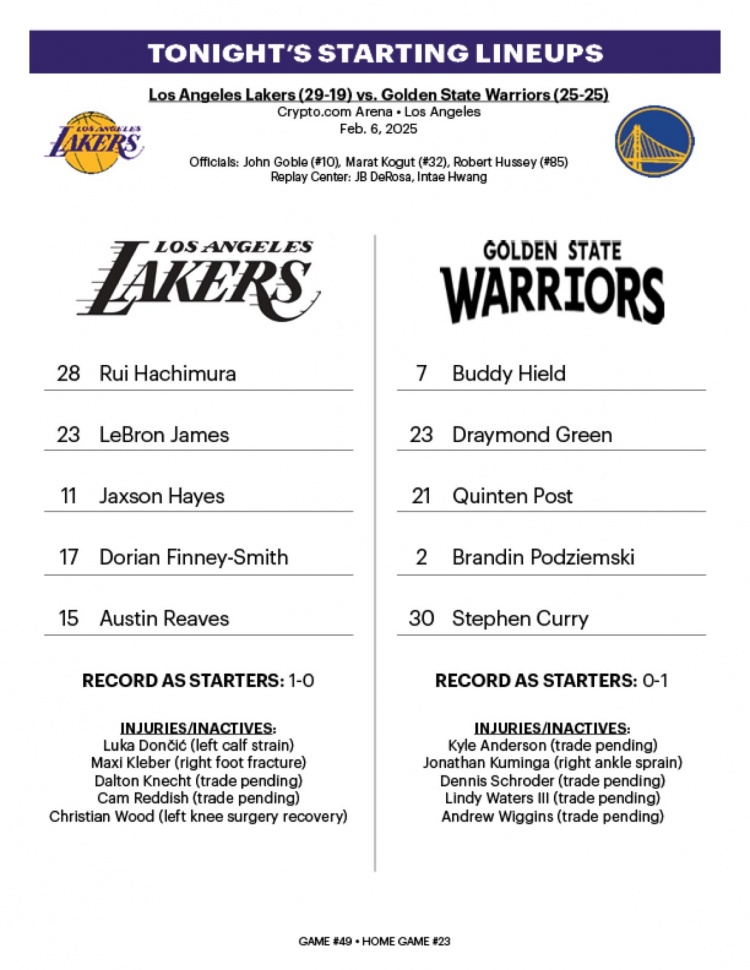 2月7日訊 今天中午11點,湖人將主場對陣勇士。賽前,雙方公布了首發陣容。湖人:八村塁、詹姆斯、海斯、芬尼、里夫斯。勇士:希爾德、追夢、波斯特、波杰姆斯基、庫里。 本文標簽: NBA 籃球 勇士 湖人 詹姆斯 庫里 追夢