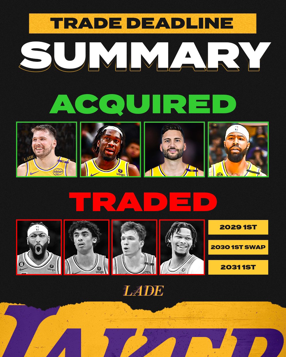 02月07日訊 NBA本賽季交易時間已正式截止。湖人隊記Dan Woike總結了湖人本賽季的交易情況:送出:拉塞爾、劉易斯、濃眉、克里斯蒂、席菲諾、克內克特、雷迪什;29年&31年首輪簽、25年&27年&30年&31年次輪簽;30年首輪互換權。得到:芬尼-史密斯、米爾頓、東契奇、馬基夫-莫里斯、克萊伯、馬克-威廉姆斯。 本文標簽: 籃球 NBA 湖人 詹姆斯 戴維斯 東契奇