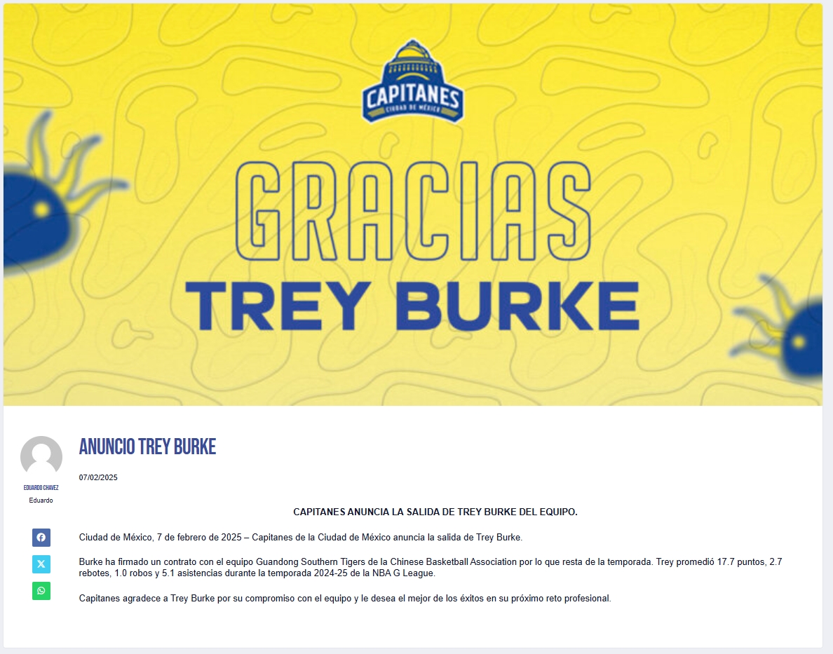 02月09日訊 G聯(lián)盟墨西哥城隊長官方宣布,特雷-伯克正式離隊并與CBA廣東宏遠男籃簽約至賽季結(jié)束。