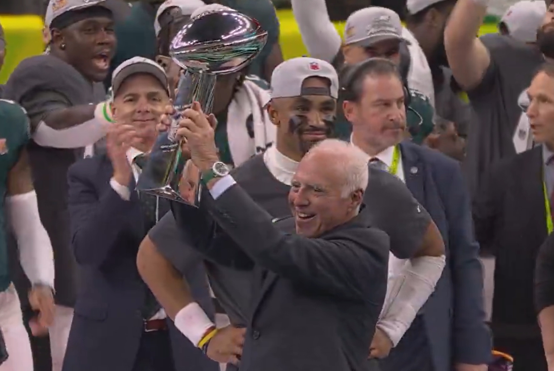 02月10日訊 費城老鷹40-22擊敗堪薩斯酋長,奪得隊史第二個超級碗冠軍。費城老鷹老板杰弗里-盧里現場觀戰并和球員一起慶祝奪冠。