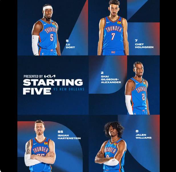 雷霆首發:亞歷山大、多特、杰倫威、切特、哈爾滕施泰因。