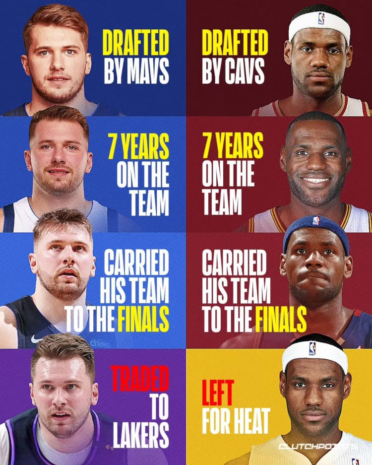 不同的是,東契奇是被獨行俠交易,而詹姆斯是自己選擇加盟熱火
